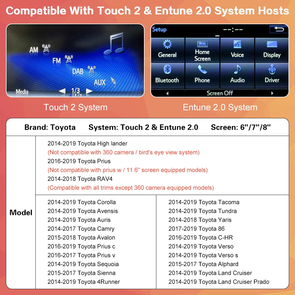 Wireless Carplay Android Auto Decoder For TOYOTA Touch2 Entune2.0 Highlander Auris Sienna Prius Yaris Camry Corolla Avensis RAV4